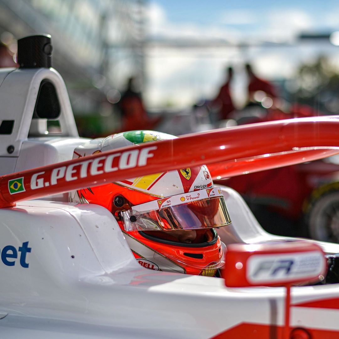 Neste domingo, Petecof voltou a largar em terceiro na corrida 2, mas teve um pneu furado após contato com Leclerc, que abandonou. O brasileiro teve de ir aos boxes, voltou em último, mas conseguiu grande recuperação para terminar a prova em sexto lugar.