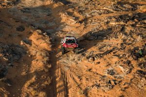 Quem completou a tripleta da Ford foi o independente Prokop. Mais uma vez, o tcheco, ao volante da Raptor T1+ gerenciada pela Orlen Jipocar Team, foi extremamente rápido, terminando a etapa Maratona a 2’14” da liderança. A Ford colocou nada menos que seis Raptor T1+ nas sete primeiras posições. O único a quebrar o domínio dos carros preparados pela M-Sport foi Lucas Moraes. O campeão vigente do W2RC, navegado por Dennis Zenz, parece ter finalmente encontrado o acerto ideal para sua Dacia Sandrider T1+. Essa performance ainda lhe permitiu saltar para o sétimo lugar na classificação geral.