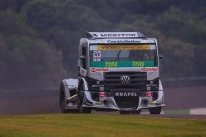 Apesar de ter largado em 12º na corrida 2, Salustiano fez boas ultrapassagens até travar uma disputa acirrada com Felipe Giaffone #18 pelo 3º lugar. “Tentei o tempo todo ultrapassar Felipe e demos até umas três batidinhas. Mas na reta, que seria mais fácil passá-lo, o caminhão não desempenhou o suficiente”, conta Salustiano, que pilota um VW Constellation com motor e chassis MAN.