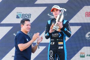 “Hoje foi quase. Com o Pedro Lins, que largou de 13°, disputou a ponta e por pouco não venceu nossa primeira no ano. Mas é um ótimo resultado, nossa equipe teve a melhor volta da pista no geral das corridas. Três pódios, três pilotos no top 6. O Nacho foi muito bem, o Paulo tá chegando junto e o Barbosa também fez bela corrida e completou as três. Ótimo final de semana e agora vamos nos preparar para Goiânia”. Foi o que afirmou Eduardo Bassani, chefe da escuderia Starret Bandeiras Bassani que conquistou o pódio na terceira corrida deste domingo (26), fechando a primeira etapa da Fórmula 4 Brasil no Autódromo José Carlos Pace, em Interlagos (São Paulo – SP). Desta vez, o piloto Pedro Lins novamente terminou entre os três primeiros, recebendo a bandeirada em segundo lugar.